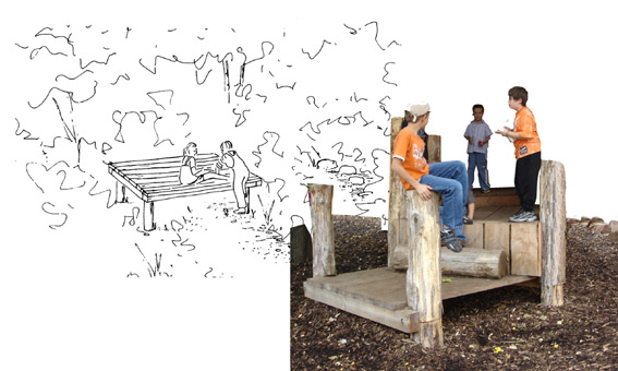 Sinnesweg, Tastkästen, ein Sitzkreis mit