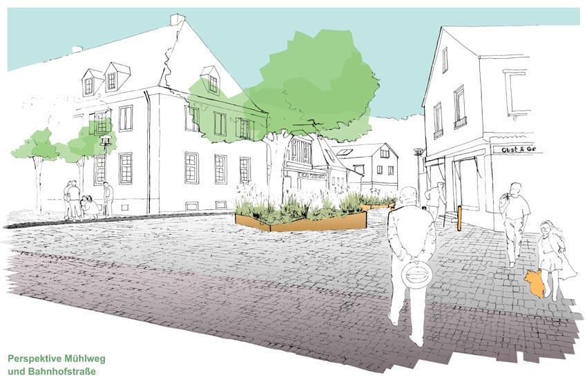 den Mühlweg und die Bahnhofstraße zu